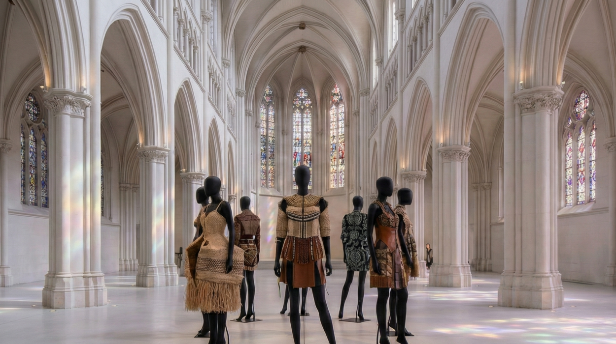 Le choix du lieu n’est pas anodin. L’ancienne église du Sacré-Cœur, avec son architecture néo-gothique mâtinée d’Art Déco qui domine le parc de la Ligue Arabe, offre un volume monumental propice à la contemplation. Pour l’occasion, l’espace a été transformé pour rompre avec l’imaginaire classique de la foire artisanale. Ici, point d’étals surchargés, mais une scénographie épurée, proche de l’installation muséale, qui force le regard à s’attarder sur le détail d’une couture, la complexité d’un tissage ou la noblesse d’un matériau.